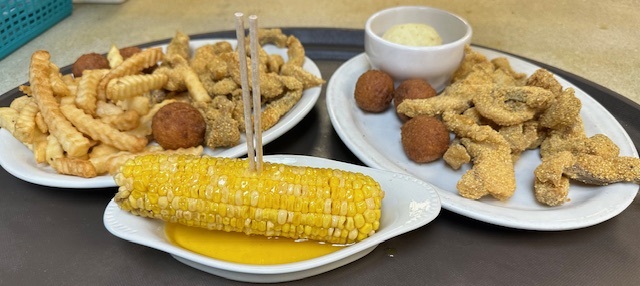 Combo Platter with Clams and Shrimp Veggie of the Day and Hashbrown Side