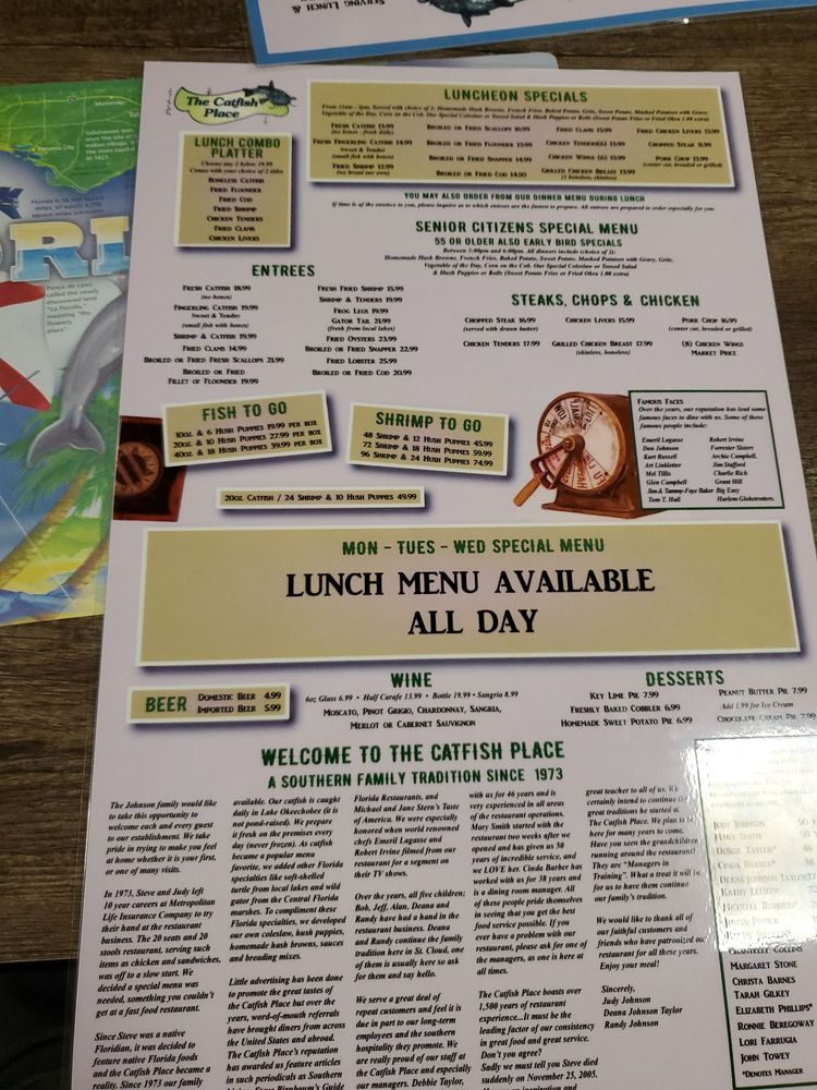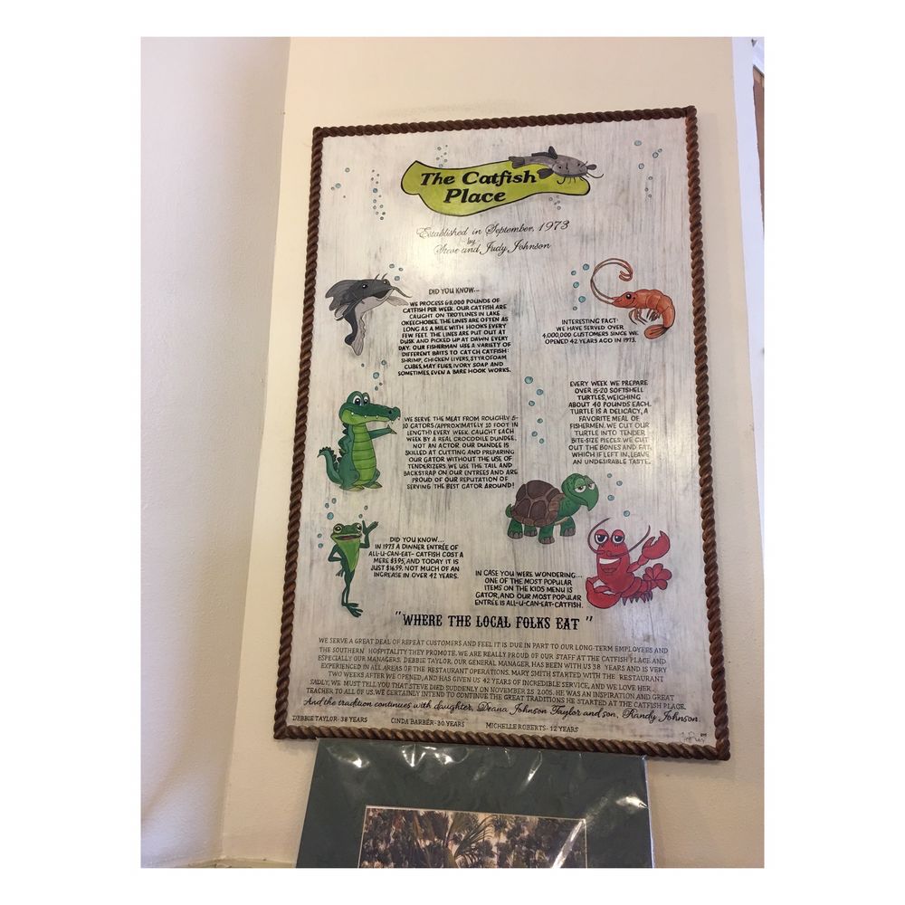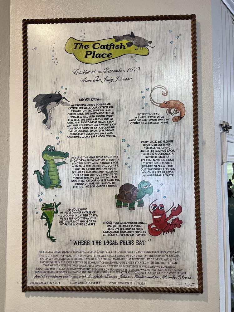 The Catfish Place in Saint Cloud, FL, offers a variety of seafood dishes in a casual setting. Customers rave about the friendly service and consistently good food, with particular praise for the Fried Catfish Platter. The crispy and perfectly seasoned catfish is the star of the show, complemented by sides like cheese grits, hush puppies, fried green tomatoes, and fried dill pickles. The restaurant also offers other lunch specials like fried shrimp and broiled scallops. While some dishes may need a bit more seasoning for certain tastes, the overall dining experience at The Catfish Place is enjoyable and satisfying. Whether you're a fan of catfish or just looking for a Southern comfort food feast, this local gem is worth a visit.